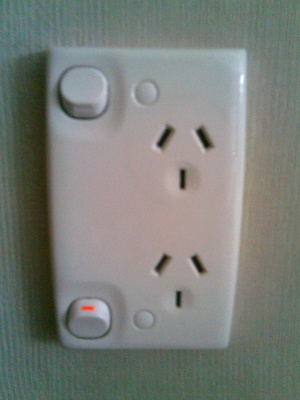This example below has the top outlet plug 'Off' and the bottom on 'On'. Not all outlet plugs in New Zealand have a red mark on them to indicate the power is on.